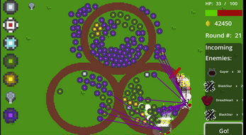 Place towers and shoot the bad guys before they cross the red line! Get upgrades at the end of each round to buff your towers.